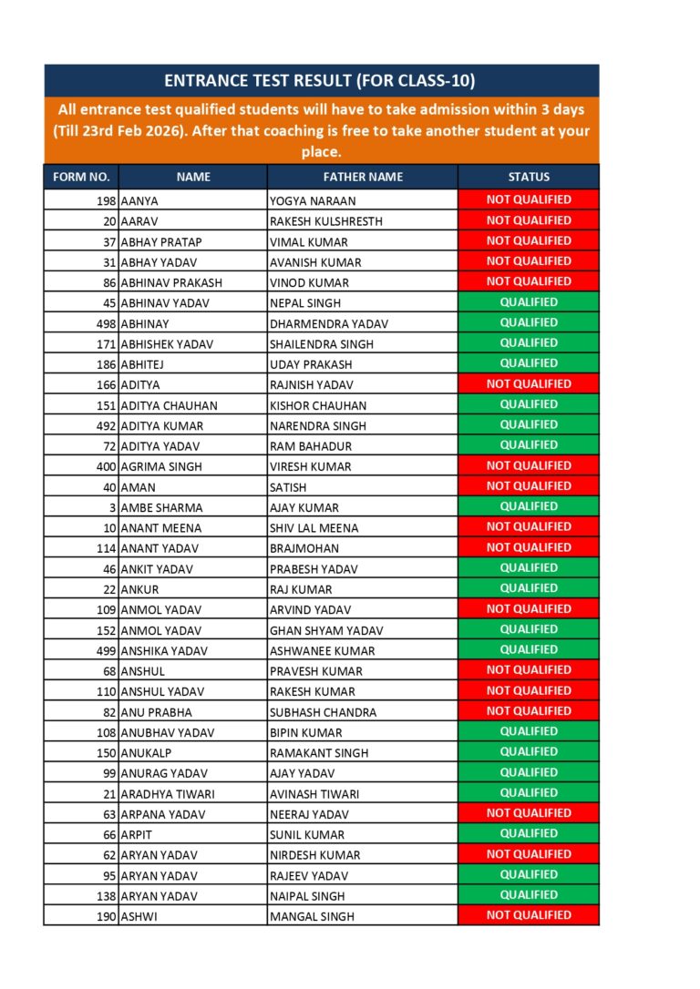 Daily and monthly mock test results of our bright students.